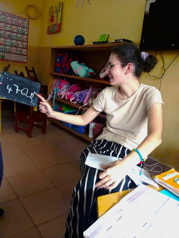 Montags bin ich danach in der 1. Klasse. Von 11:00-12:30 Uhr helfe ich im Klassenzimmer, wo ich die Kinder beim Rechnen unterstütze. Das ist oft sehr laut und anstrengend, aber auch ein großer Erfolg, wenn wir dann endlich das richtige Ergebnis gefunden haben! Nach der zweiten Pause mache ich dann noch mit den Erstklässlern, die Lese- und Schreibschwierigkeiten haben, eine Art Intensivierung bis 14:30 Uhr. Weil die Kinder am Ende des Tages schon müde sind, fällt ihnen gerade da die Konzentration schwer, aber wenn jedes Kind einmal konzentriert gelesen hat, bin ich schon zufrieden, auch wenn dann 15 Minuten vor Schluss Chaos ausbricht. Und natürlich bin ich jedes Mal stolz, wenn ein Kind Fortschritte macht!