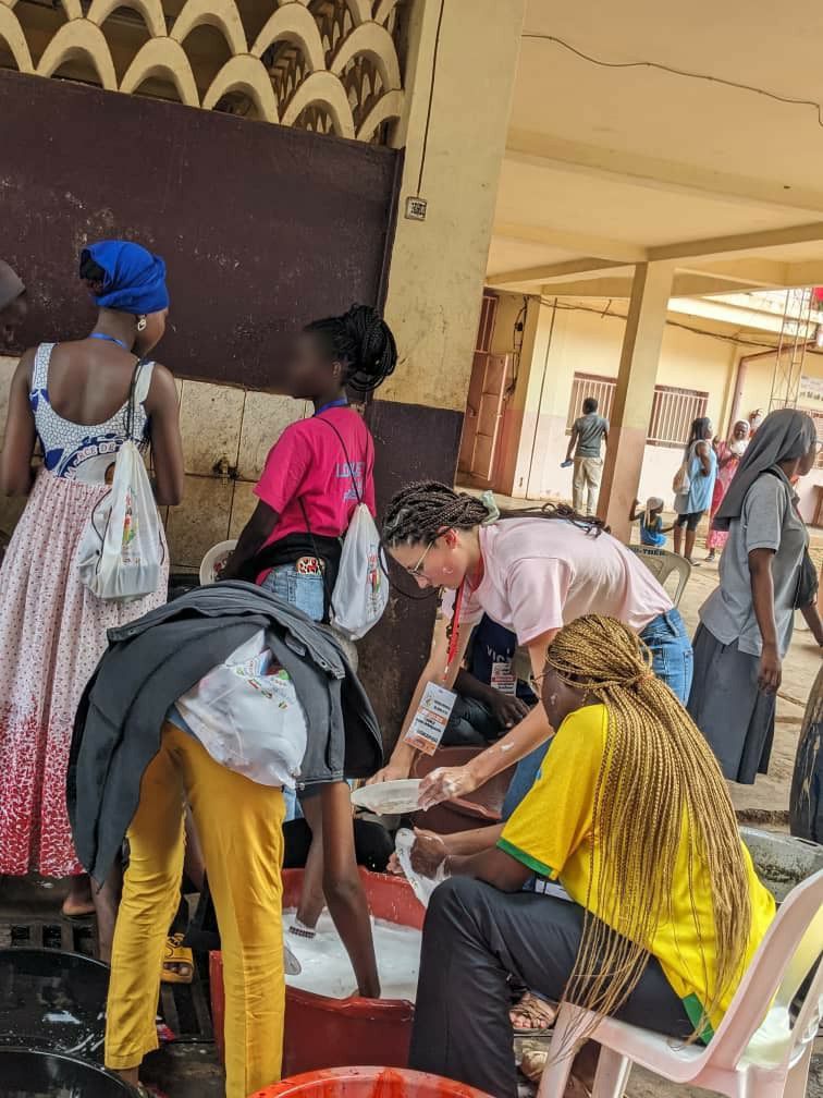 Gegen Mitternacht sind wir dann bei den Salesianern in Mimboman – einem Stadtteil von Yaoundé – angekommen. Was ich leider nicht wusste: Die Übernachtung für die Teilnehmer am MSJ war auf Matrazen in den Klassenzimmern der Schule, und wenn man so an eine Schultoilette denkt und sich vorstellt, dass das eine Woche lang als Klo, Bad und mit Eimern gleichzeitig noch als Dusche dienen soll, dann fand ich das jetzt nicht gleich so prickelnd. Die erste Nacht habe ich dann irgendwie überstanden und am Tag darauf bei den Schwestern geduscht und ein bisschen Schlaf nachgeholt. Deren Haus ist zwar im selben Stadtteil, allerdings doch ein ganzes Stück schlechte Straße entfernt. Ich hatte das Angebot, bei den Schwestern zu übernachten, wollte dann aber nicht als Einzige woanders bleiben und nachdem ich schnell andere kennengelernt habe, war das dann auch okay.