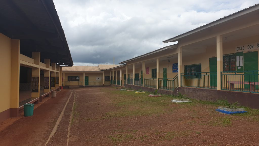 In Gabun gibt es öffentliche Schulen und Privatschulen, wobei die Schule der Schwestern eine Privatschule ist, das heißt, es wird Schulgeld verlangt. Allerdings sind auch die öffentlichen Schulen nicht ganz umsonst: Für Schuluniform und Bücher müssen die Eltern der Schüler in jedem Fall selbst aufkommen.